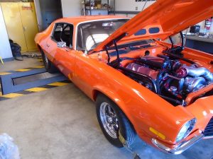 We built a 565 CI for this car and it was in for Dyno tuning after being installed. With a F2R ProCharger at 6-8 lbs of boost with a street tune we were making 864 HP and 718 TQ. We tried to video with a semi pro recorder with a pro mic and at 20 feet away the sound this car made at 6,300 RPM would overwhelm the equipment. Fun times on a Tuesday night!
